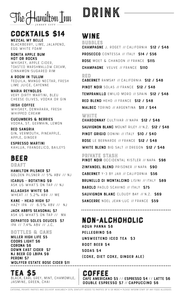 The Hamilton Inn Menu In Jersey City New Jersey Usa